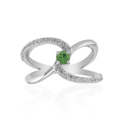 Cette captivante bague en diopside russe présente une pierre précieuse en forme de goutte de 0,599 ct, sertie dans de l'argent 925 plaqué platine. Les teintes vertes de la pierre centrale sont accentuées par 21 zircons ronds étincelants provenant du Cambodge, pour un poids total de 0,88 ct. Les teintes vertes luxuriantes de la pierre centrale sont accentuées par 21 zircons ronds étincelants provenant du Cambodge, pour un poids total de 0,88 carat. Cette bague est un testament de sophistication, parfaite pour ajouter une touche de couleur à vos tenues de soirée ou pour faire une déclaration lors d'événements spéciaux.