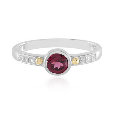 Cette bague sophistiquée est un mélange de beauté et de grâce, avec une pierre précieuse Rhodolite centrale élégamment sertie dans de l'argent sterling 925, complétée par des éléments en or 14K. La technique de granulation ajoute de la texture et de la profondeur, conférant à cette pièce de 24 x 21 mm une allure unique. Pesant environ 2,15 g d'argent et 0,07 g d'or jaune, il est parfait pour ajouter une touche de couleur à vos tenues quotidiennes ou pour rehausser un ensemble de soirée.