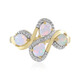 Cette bague captivante présente quatre opales Welo lumineuses d'Éthiopie, joliment taillées en forme de poire pour mettre en valeur leur jeu de couleurs envoûtant. Accentuée par 40 topazes blanches de taille ronde provenant d'Inde, cette bague brille par sa sophistication. Fabriquée en argent sterling 925 et élégamment plaquée or, cette pièce est parfaite pour rehausser n'importe quel ensemble de soirée. Idéale pour les occasions spéciales ou comme pièce d'apparat au quotidien.