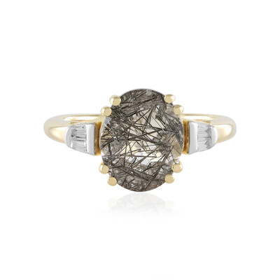 Découvrez l'attrait de cette superbe bague ornée d'un quartz noir rutilé de 2,115 ct provenant du Sri Lanka, élégamment rehaussé de zircons cambodgiens. Fabriquée en argent sterling 925 plaqué or, sa coupe ovale ajoute une touche de sophistication. Parfaite pour une soirée ou une occasion spéciale, cette bague s'accorde sans effort avec des tenues décontractées ou habillées, et ajoute une touche unique à votre collection de bijoux.