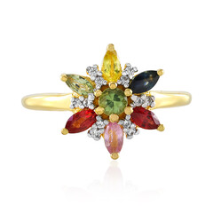 Célébrez un spectre de couleurs avec cette bague vibrante en argent 925 plaqué or, ornée d'un éventail de 16 saphirs de Madagascar de taille ronde totalisant 2,058 carats. Accentuée par 23 zircons cambodgiens étincelants, cette pièce de 0,505 carat allie le luxe à une touche ludique. La taille de la bague (20x19 mm) lui confère une présence substantielle sur le doigt, convenant aussi bien au chic décontracté qu'au glamour du soir. Le plaquage d'or chaud ajoute un charme intemporel à cette bague, qui se marie à merveille avec des vêtements neutres ou audacieux.