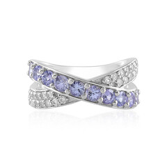 Bague en argent 925 avec tansanite tanzanienne et topaze blanche, 0,873 ct