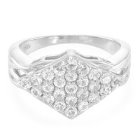 Cette charmante bague présente une constellation de 25 topazes blanches rayonnantes du Brésil, serties en forme de triangle sur un élégant anneau en argent 925. Les topazes ont un poids total en carats d'environ 0,996 ct et une taille ronde et brillante pour maximiser leur éclat. Avec un poids d'environ 4,1 grammes, la bague en argent est à la fois durable et brillante, ce qui fait de cette pièce un choix idéal pour une utilisation quotidienne ou pour des occasions spéciales. Associez cette bague à un chemisier blanc impeccable et à un pantalon de tailleur pour un look chic sans effort, ou à une petite robe noire pour plus de glamour lors d'une soirée.