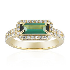Cette bague exquise met en valeur une vibrante émeraude sambienne de 0,692 ct, taillée en octogone, magnifiquement mise en valeur par 30 étincelants diamants SI2 totalisant 0,137 ct. Sertie dans de l'or jaune 10K lustré, cette combinaison crée une aura d'élégance et de sophistication. Parfaite pour rehausser une tenue de soirée ou pour ajouter une touche de luxe à un ensemble de jour, elle constitue une déclaration éblouissante.