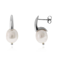 Boucles d'oreilles en argent et Perle blanche de culture d'eau douce (Joias do Paraíso)