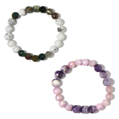 Découvrez l'attrait de notre ensemble de bracelets en perles à facettes multigemmes, composé d'améthystes exquises du Brésil, de kunzites d'Afghanistan, d'agates moussues d'Inde et de howlite des États-Unis. Avec un total de 161,407 ct, ces bracelets ajoutent une touche vibrante à n'importe quelle tenue. Parfaits pour une journée décontractée ou une soirée élégante, ces bracelets rehaussent sans effort votre style grâce à leur charme unique et coloré.