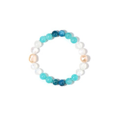 Voici un vibrant bracelet multi-gemmes composé de perles blanches d'eau douce de Chine, de labradorite de Madagascar, de pierres de lune d'Inde, d'agates bleues du Mexique, d'onyx vert et d'hématite dorée. Ce bracelet de 18 cm allie élégance et diversité des teintes pour en faire un accessoire parfait. Idéal pour les occasions décontractées ou formelles, il rehausse sans effort n'importe quelle tenue grâce à son charme éclectique et à son attrait gracieux.