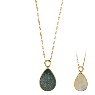 Pendentif plaqué or ambre baltique et fuchsite, 23,5ct
