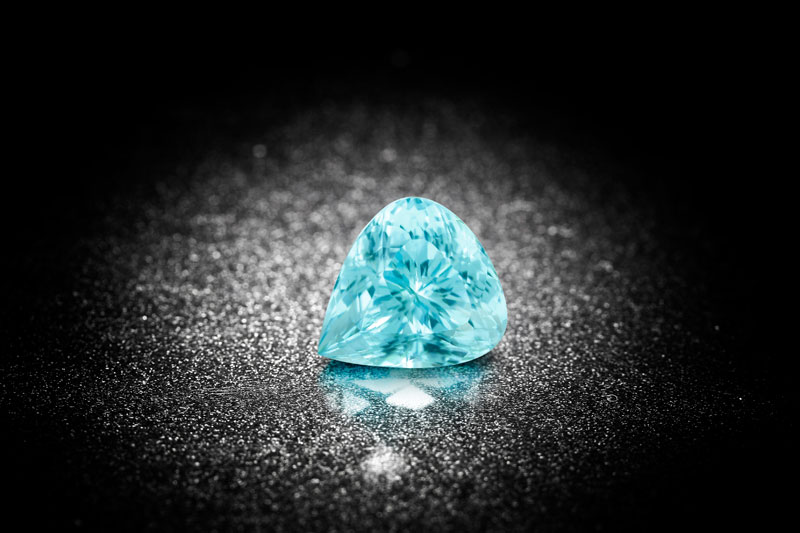 La Tourmaline Paraïba est nommée d'après le lieu de sa première découverte, au Brésil. Sa gamme de couleurs s'étend du bleu caraïbes au bleu turquoise, en passant par un bleu néon.
