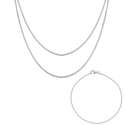 Découvrez l'élégance intemporelle de notre chaîne en argent sterling, fabriquée en argent 925 pur pesant environ 2,743 grammes. Cette collection polyvalente comprend deux chaînes de différentes longueurs, 45 cm et 50 cm, complétées par un bracelet de 19 cm, parfaits pour être superposés ou portés individuellement pour un look plus simple. Idéales pour une tenue décontractée ou habillée, ces pièces deviendront vos accessoires de prédilection en toute occasion, s'associant sans effort à une variété de tenues, du jour à la nuit.