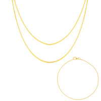 Adoptez l'allure intemporelle de cet ensemble de colliers plaqués or raffinés, fabriqués en argent 925. Cet ensemble comprend deux chaînes d'environ 45 cm et 50 cm de long, ainsi qu'un bracelet de 19 cm, chaque pièce présentant une finition polie qui brille à la lumière. Son poids total d'environ 2,743 grammes souligne sa qualité et sa résistance. Parfaite pour être superposée ou portée individuellement, cette parure ajoute une touche d'élégance aux tenues de tous les jours et aux occasions spéciales. Un compagnon polyvalent pour votre collection de bijoux.