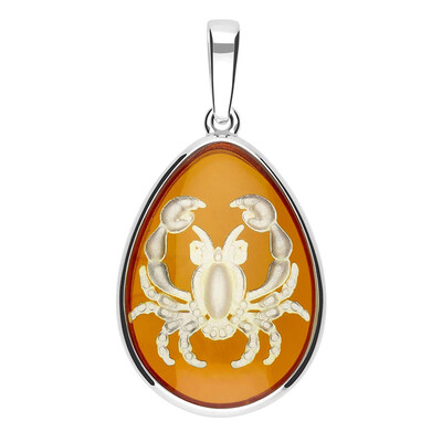 Découvrez l'allure captivante de ce superbe pendentif, orné d'un cabochon d'ambre baltique en forme de goutte de 3,25 carats, serti dans de l'argent sterling 925 de haute qualité. La pierre précieuse centrale provient de Pologne, connue pour ses teintes riches et mielleuses et sa beauté naturelle envoûtante. Cet ambre lumineux est orné d'un crabe en argent sterling délicatement travaillé, qui apporte une touche imaginative et nautique à la pièce. Sa taille de 36x18 mm en fait un accessoire de choix, parfait pour ajouter une touche de fantaisie à des tenues décontractées ou habillées. Idéal pour les personnes ayant le signe astrologique du cancer ou pour les passionnés de la vie marine, ce pendentif sera un ajout précieux à toute collection de bijoux.