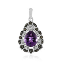 Ce pendentif exquis présente une superbe améthyste brésilienne de 2,97 ct, taillée en gracieuse goutte d'eau, entourée d'étincelants accents de marcassite d'Autriche. Fabriquée en argent 925, cette pièce apporte une touche sophistiquée à tout ensemble. Parfaite pour les soirées ou pour ajouter de l'élégance à une tenue de tous les jours, elle constitue un ajout polyvalent à votre collection de bijoux.