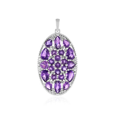 Ce pendentif exquis met en valeur une collection vibrante d'améthystes brésiliennes, qui totalisent 6,795 carats. Serties dans de l'argent 925, les pierres taillées en marquise, en trillion et en rond créent un spectacle visuel époustouflant. Idéale pour les occasions élégantes, elle s'associe à un décolleté simple pour laisser briller sa beauté. L'accessoire parfait pour ajouter une touche d'élégance violette à n'importe quelle tenue.