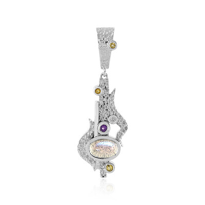 Découvrez l'allure mystique de notre pendentif en argent Labradorite de Madagascar avec améthyste et citrine. Fabriqué avec un captivant cabochon ovale de Labradorite de 0,54ct, rehaussé par la splendeur chatoyante des gemmes brésiliennes, cette pièce étonnante est sertie dans 2,25g d'argent sterling 925. Accessoire parfait pour celles qui apprécient une touche d'élégance exotique, ce pendentif promet d'être un ajout polyvalent à votre collection, passant sans effort du chic de la journée au glamour de la soirée.