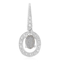 Ce pendentif exquis met en valeur la beauté unique d'une spectrolite roumaine, pesant 0,45ct avec une coupe ovale élégante, nichée au centre d'un halo étincelant de topaze blanche brésilienne. Fabriqué en argent 925 de haute qualité, le poids total du pendentif est de 0,54ct. D'une conception délicate, cette pièce met en valeur les vêtements de travail et rehausse les tenues de soirée, ce qui en fait un ajout polyvalent à toute collection de bijoux.
