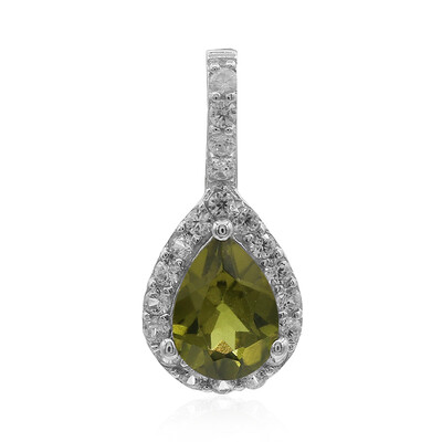 Découvrez le charme captivant de ce pendentif en argent sterling, mettant en valeur une Idocrase du Kenya de 0,648 ct taillée en goutte d'eau, entourée de 20 zircons cambodgiens taillés en rond. Les teintes olive luxuriantes de l'Idocrase sont délicatement encadrées dans de l'argent 925, ce qui rend cette pièce idéale pour l'élégance de tous les jours et les occasions spéciales. Associez-le à une chaîne discrète pour une sophistication raffinée ou superposez-le pour un look plus contemporain.